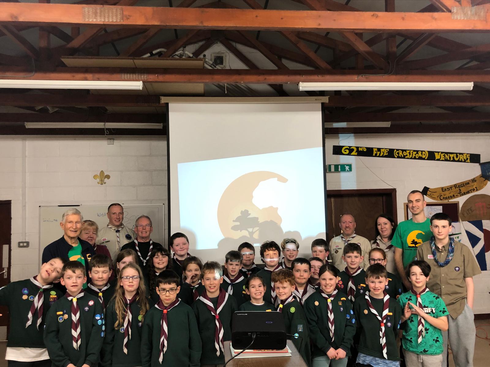 On the 23rd of February 2026 we gave a presentation about the charity to the 62nd Fife Scotland Scouts at Crossford, near Dunfermline. Eric gave an interactive presentation to the 8–11-year-old cubs.